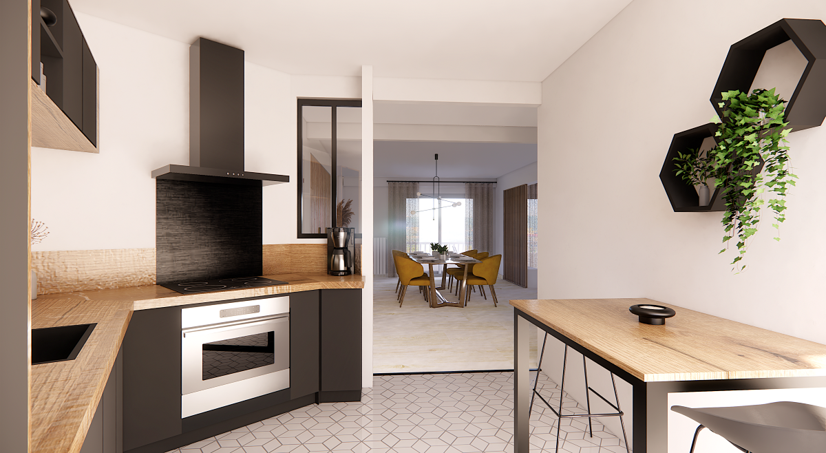 Projet Appartement Montpellier -2 propositions d'agencement avec ouverture couloir sur cuisine et création placard dans débarras actuel -