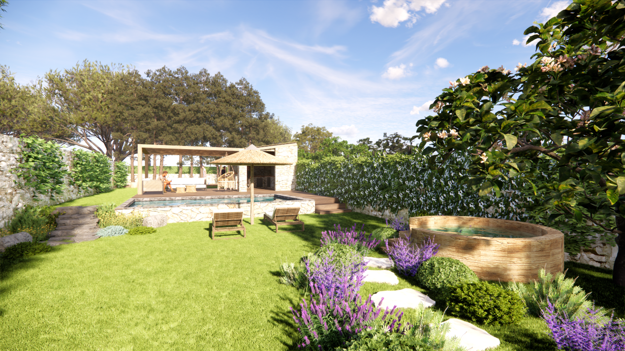 Projet Jardin Anglais - Avec arbre de Judée ou Olivier-