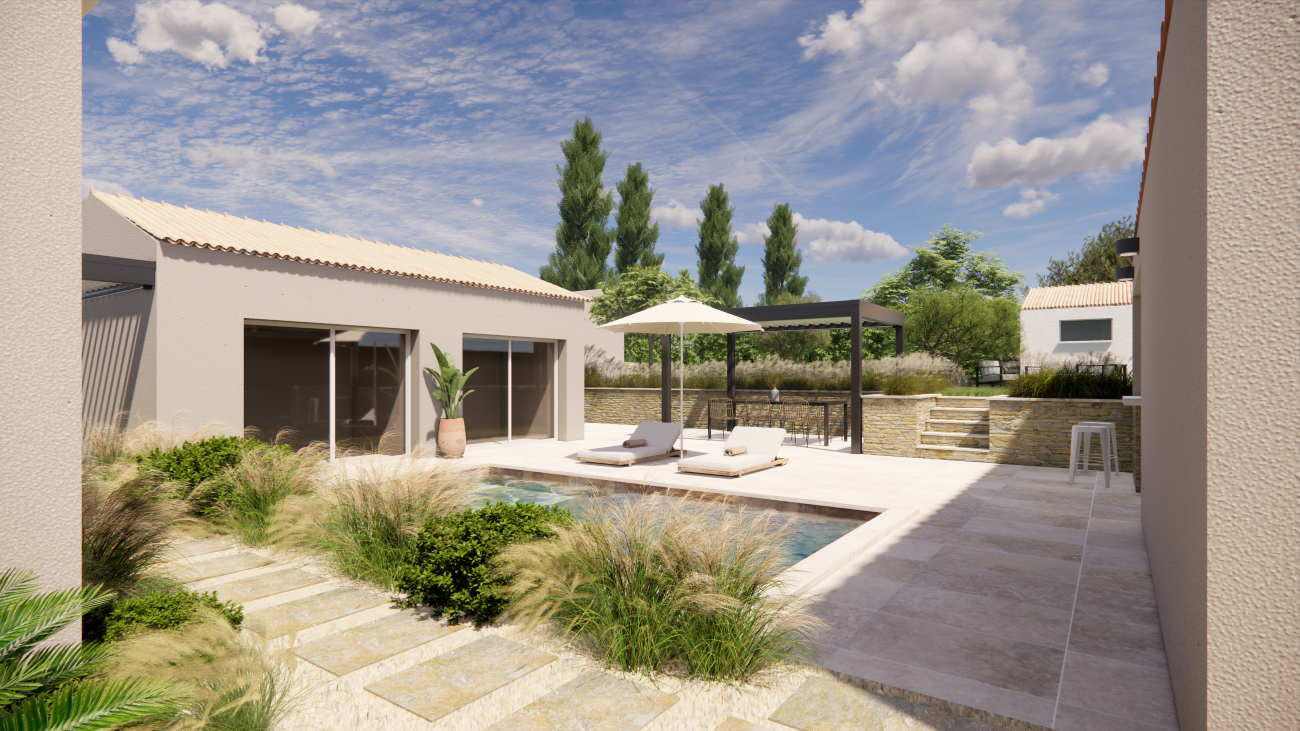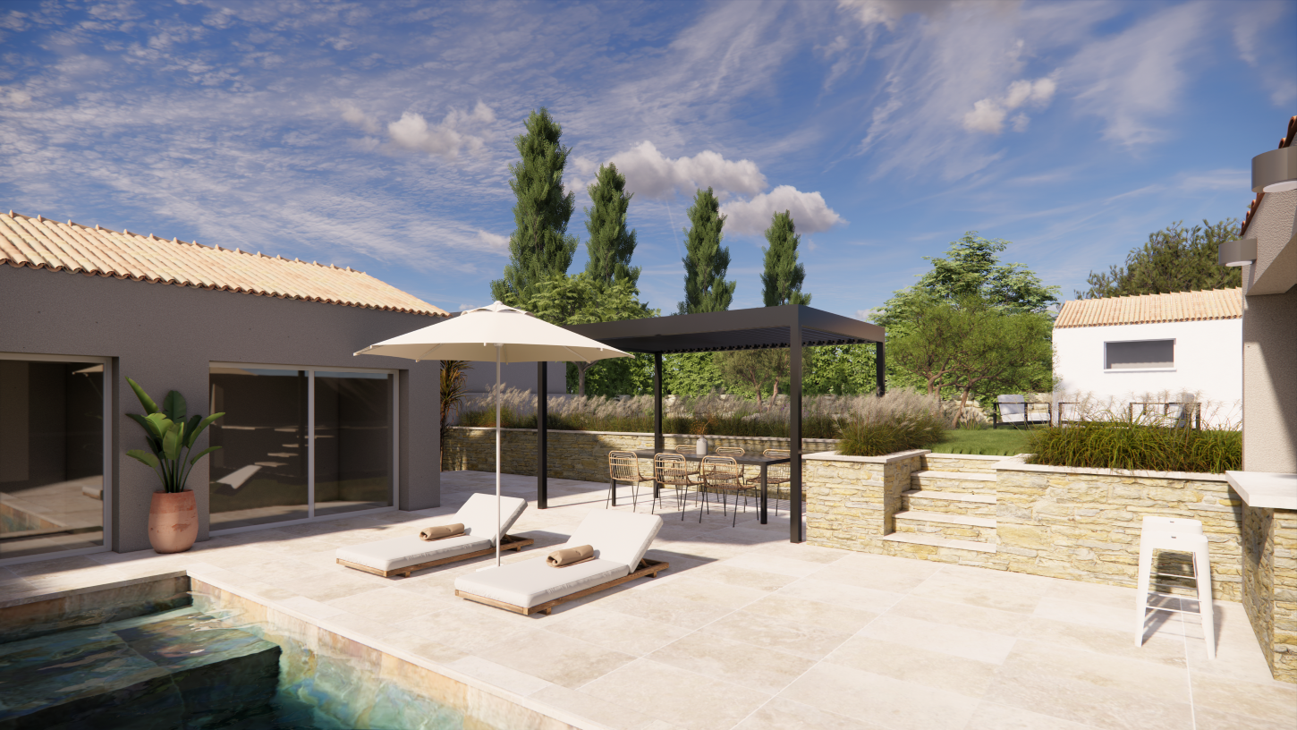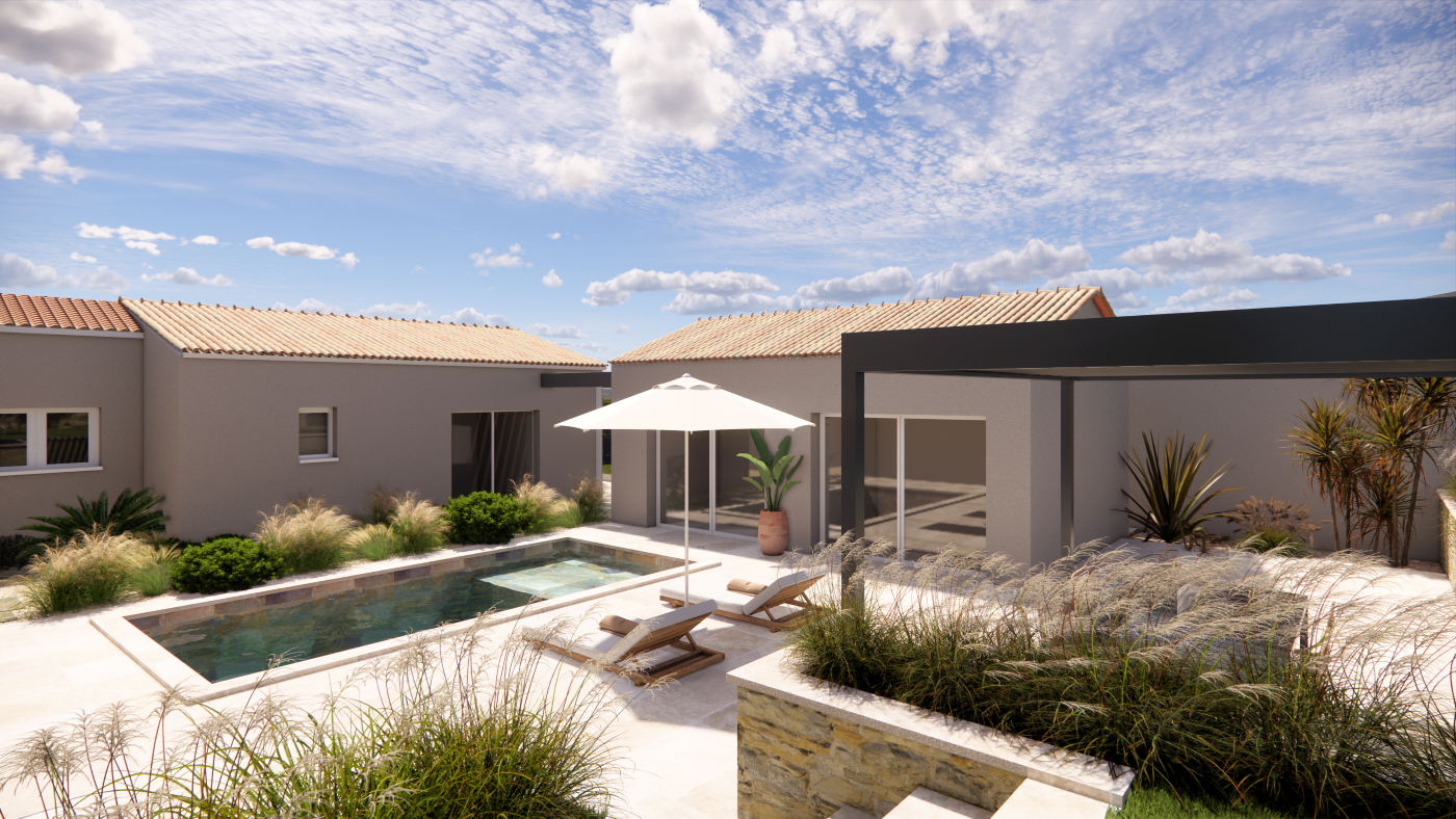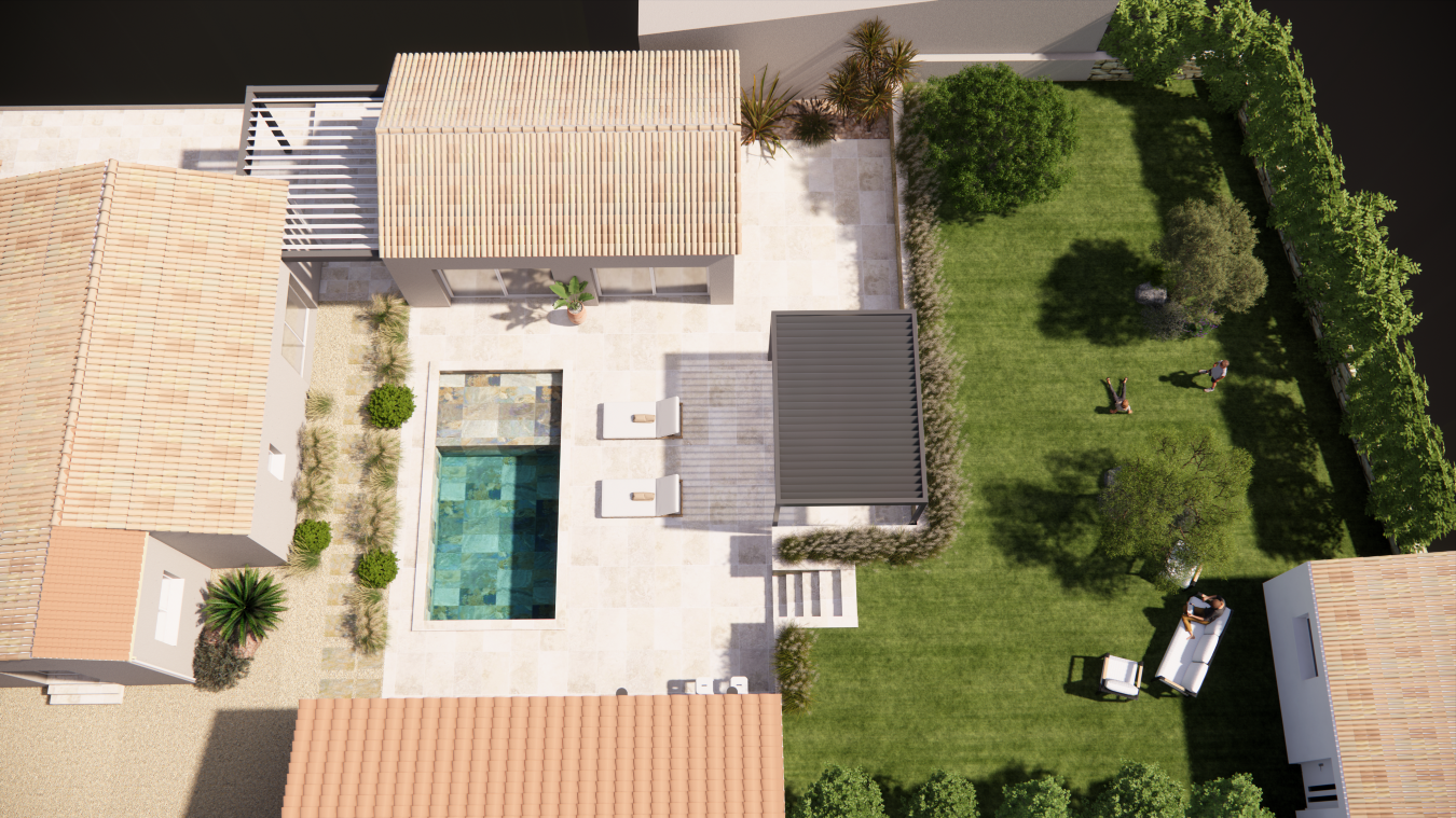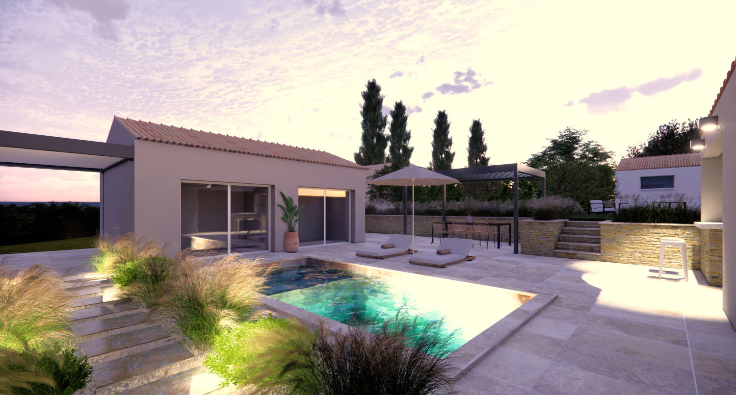Projet Poussan - Visualiser l'espace avec piscine, extension et recul de la bute-